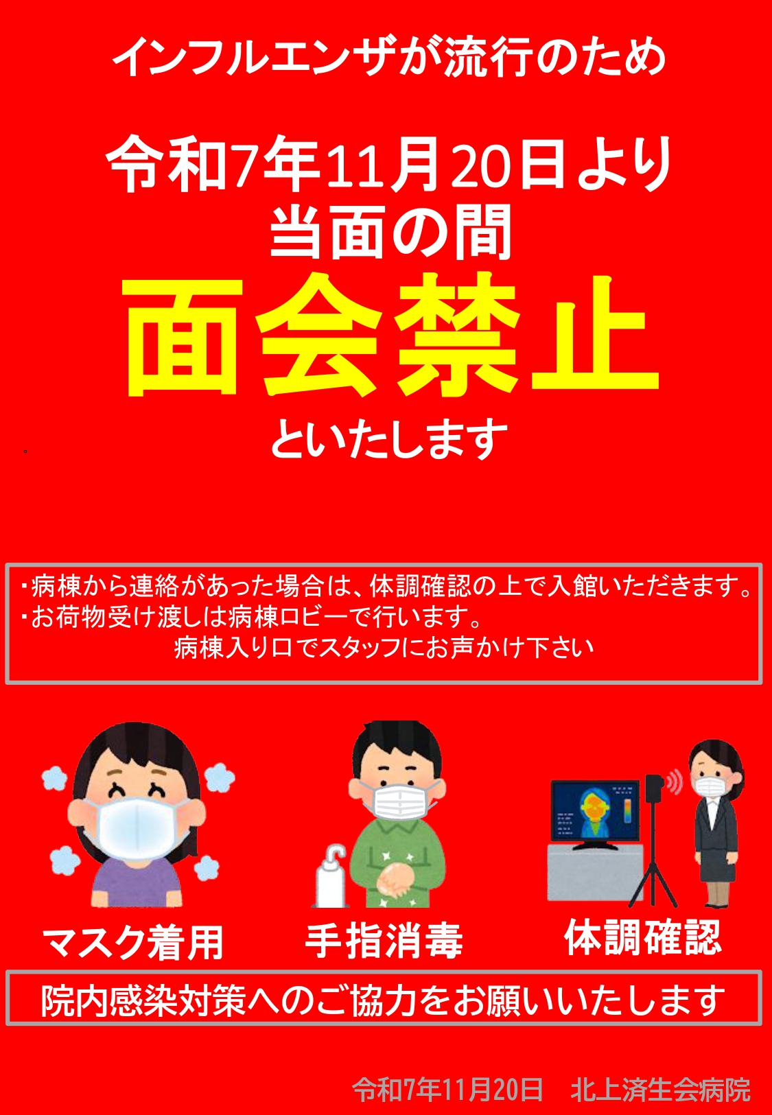 インフルエンザ感染拡大に伴う面会禁止のお知らせ(2025年11月20日~)