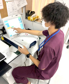 また、穿刺が難しい症例に対しては、エコーを用いた穿刺にも対応しています。透析業務は腎不全等に対して行う治療で当院ではOn-lineHDF、HD、I-HDF、ECUMといった治療を医師、看護師等と連携して行っています。