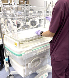 人工呼吸器の保守管理、使用中の安全点検、回路交換などを行っています。使用前の回路セッティングから使用後の終業点検まで、必要な点検・校正を確実に行うことで、人工呼吸器の信頼性を維持し、患者さんに安心して使用できる環境を整えています。
